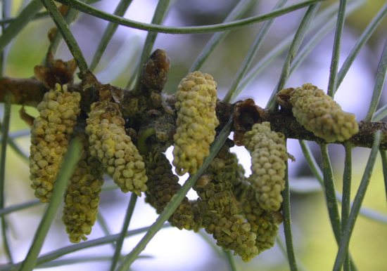 Растение однодомное. Женские стробилы зеленые, мужские – красного цвета.