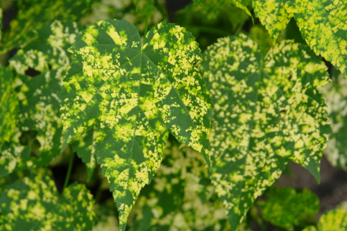 - Abutilon striatum — Абутилон полосатый, пёстрые тёмно-зелёные листья и цветки с оранжевой или красной окраской.