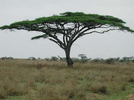 Листья двояко перистые, большей частью с многочисленными мелкими листочками. У многих (преимущественно австралийских), видов пластинка листа полностью или частично не развивается и тогда функцию фотосинтеза выполняет листовидно расширенный черешок (т. н. филлодий). Характерная особенность других акаций — наличие прилистников, видоизменённых в колючки. У американских видов A. sphaerocephala, A. costaricensis, у африканского — А. drepanolobium, а также у некоторых других видов колючки очень крупные и заселяются муравьями. У акаций обычно жёлтые или белые мелкие цветки, заметные главным образом благодаря многочисленным тычинкам, далеко выдающимся из венчика; цветки эти в головчатых или колосовидных соцветиях, в свою очередь собранных в сложное, большей частью метельчатое соцветие. Плод — двустворчатый или невскрывающийся боб. Акация с зонтиковидной кроной - характерный ландшафтный элемент саванн Африки.