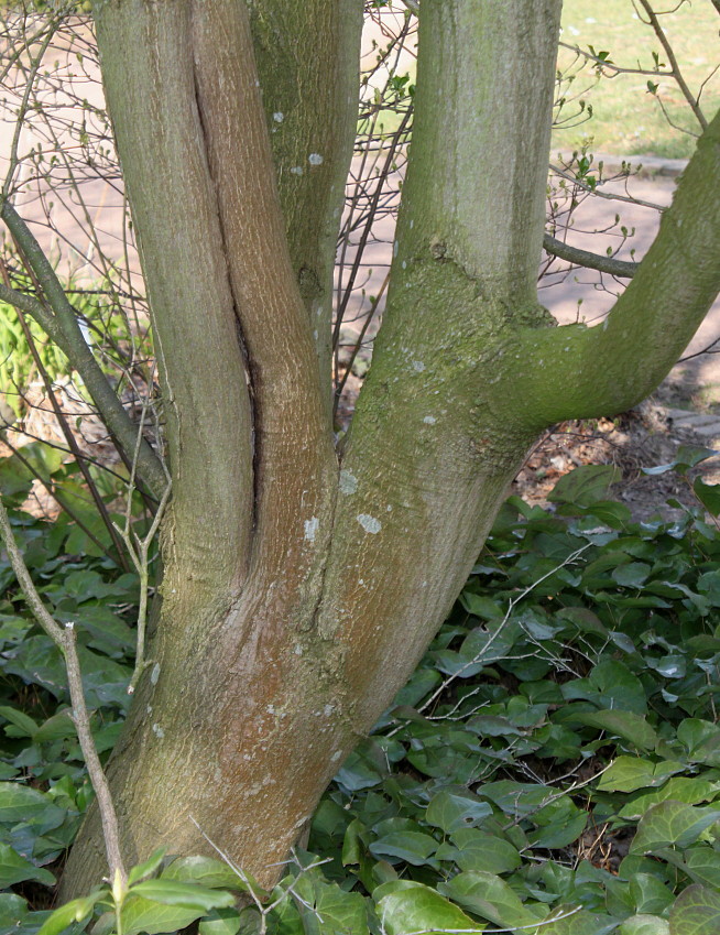Представляет собой листопадное деревце или кустарник, 6-10 (16) м в высоту. Растет медленно. Годовой прирост составляет 15 см. в высоту и 30 см.в ширину.Живет 100-150 лет. Крона в молодости шарообразная, позже шатрообразная, густая. Имеет несколько стволов, соединяющихся возле земли. Побеги голые, тонкие, зеленоватого или пурпурного цвета. Кора зеленовато-серая или светло-коричневая, гладкая. Зимние почки пурпурно красные, конические, маленькие.