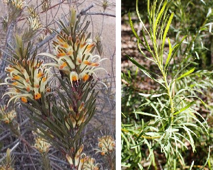 Аденантос прибрежный (Adenanthos sericeus) - невысокое дерево, достигающее 2-2,5 м в высоту, листья сидячие, серо-зеленого цвета, тонкие, как хвоя. Ствол и молодые листья серебристо опушенные. Цветки трубчатые темно-красные, опушенные, одиночные, пазушные, могут появляться в течение всего года.