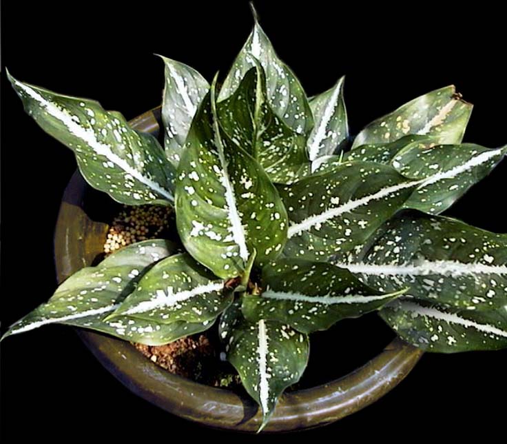 Аглаонема - родственница диффенбахии и поэтому несколько похожа на нее, отличается лишь более узкими листьями, размеры аглаонемы значительно меньше диффенбахии, а само растение имеет форму куста. Кроме того, аглаонемы довольно продолжительно цветут и образуют плоды. Это одно из самых подходящих растений для гидропонной культуры.