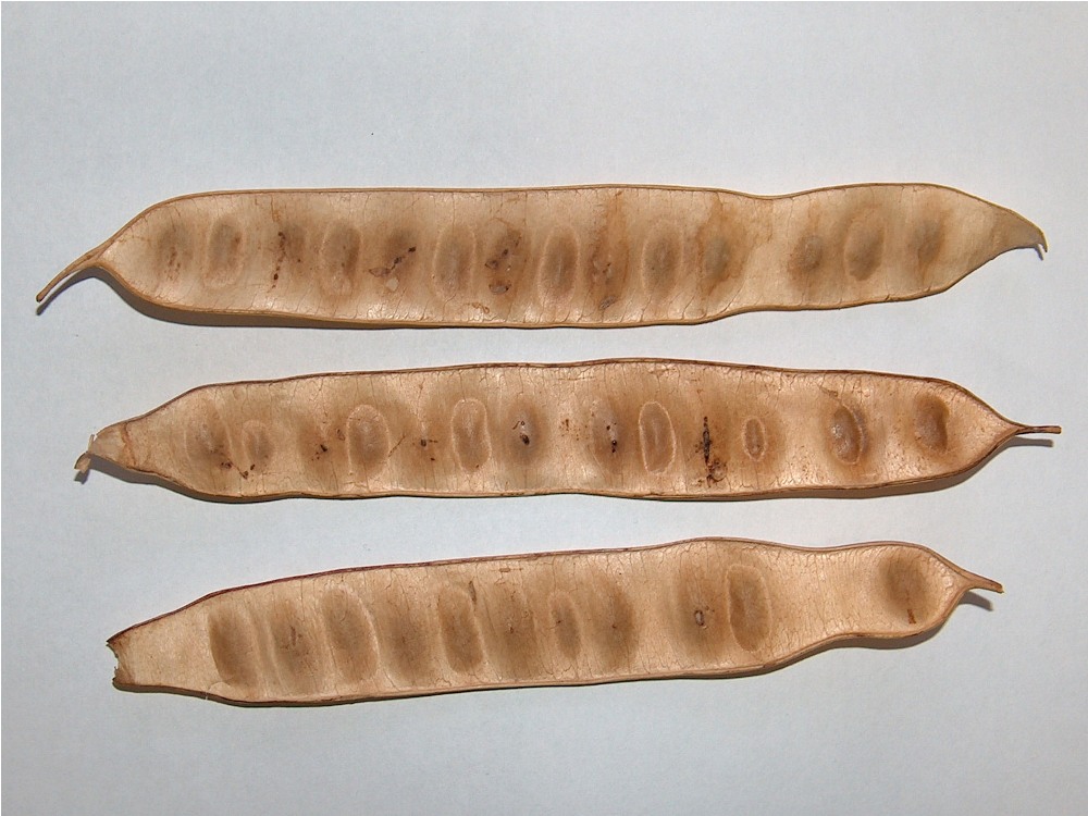 Плоды – плоские многосемянные коричневые бобы, 10-20 см в длину и 2-25 см в ширину.