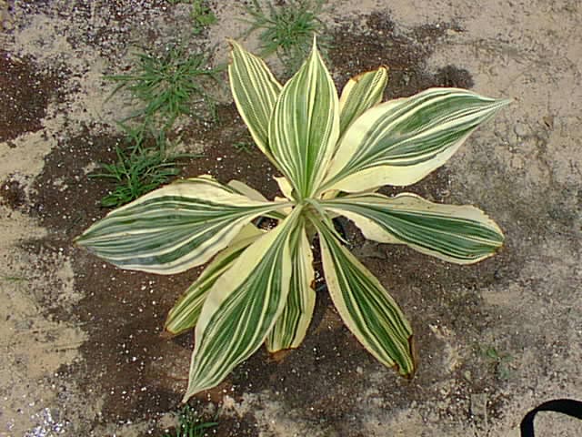 Крупное травянистое растение с крепкими, прямостоячими, вздутыми в узлах, слабоветвистыми стеблями до 2 м высотой. Листья очередные, сидячие, с трубчатым влагалищем, снабженным вертикальным рядом волосков и длинными ресничками по краю; широкоэллиптические или широкообратноланцетные, с длиннозаостренной верхушкой, крупные - до 25 см длиной, 5-6 см шириной, голые, лишь по краю - розовая узкая кайма с густыми короткими ресничками. Цветки мелкие, белые, в парных завитках, снабженных листовидными, ладьевидно сложенными прицветниками. Немногочисленные завитки собраны в длинное, слаборазветвленное метельчатое соцветие на длинном цветоносе. Чашелистиков и лепестков по 3, свободные или слегка сросшиеся в основании, тычинок 6, их нити с длинными волосками. Произрастает в подлеске влажных тропических лесов, реже - на известковых скалах и обрывах в тенистых местах. Известна садовая форма "Mexican Flag" (иногда ошибочно относимая к роду Dichorisandra) с белыми или чуть желтоватыми листьями и узкой фиолетовой каймой по краю, испещренными продольными светло- и темно-зелеными линиями и полосами. В культуре недавно.