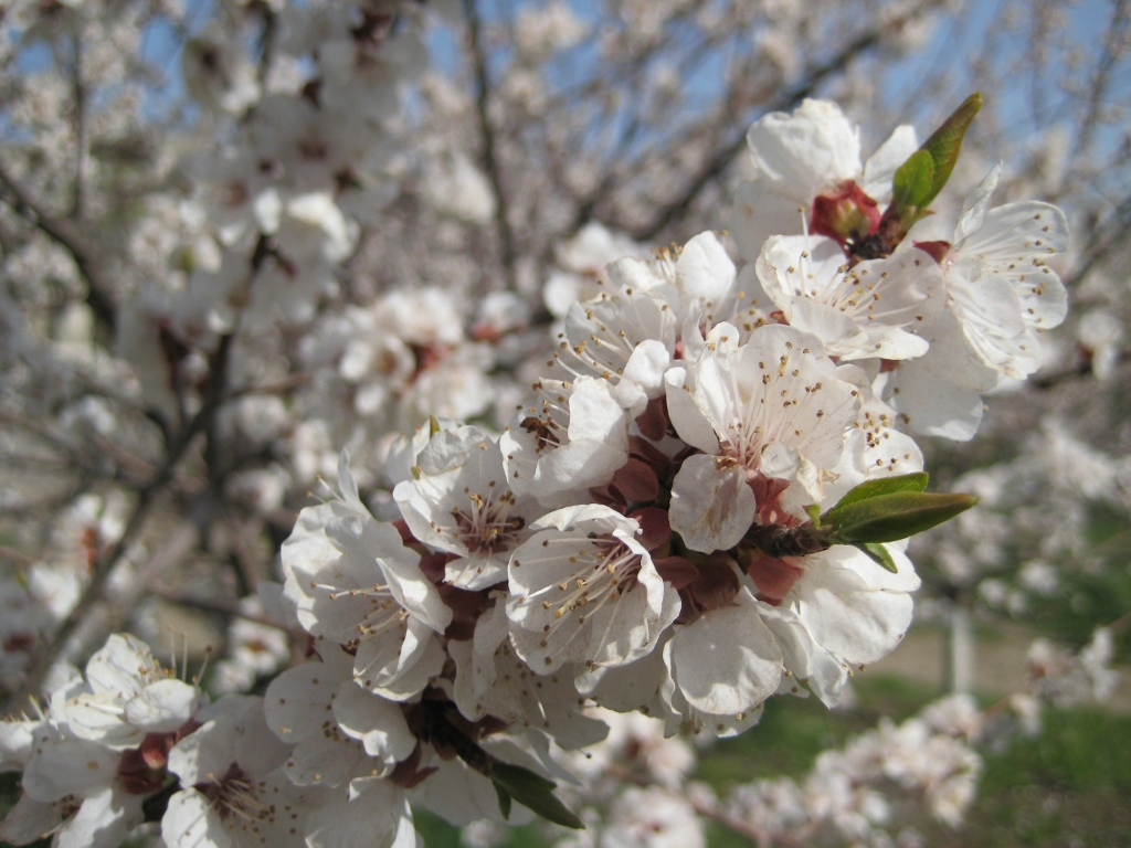 Цветет абрикос до появления листьев, от 5 до 9 дней. Цветы белого или розового цвета, имеют похожее строение, как у сливы, ароматные. Цветы образуются на коротких отростках, по одному бутону на отростке. Цветы всех сортов абрикоса – самоплодные и не нуждаются в опылении. Плодоносит на однолетних побегах, которые делятся на побеги продолжения, плодовые и букетные (шпорцы). Плодовые веточки маленькие и тонкие, букетные – короткие (1-5 см в длину). Одна генеративная почка цветов может образовать только один цветок. Основная масса урожая образовывается на побегах продолжения.