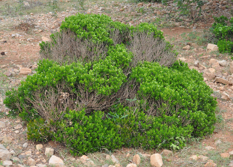 Самшит Гильденбрандта (Buxus hildebrandtii Baill.). Сокотра, плато Хомхи.