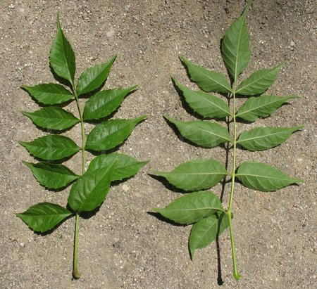 Листья сложные, непарноперистые, темно-зеленые сверху, снизу – бледноватые, 25-40 см в длину, состоят из 7-13 небольших овальных листочков 7-10 см в длину и 3-4 см в ширину.
