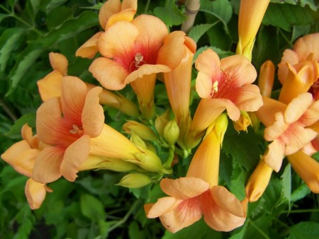 Цветет в конце лета, воронковидные, 8 см в длину и 5-7 см в ширину, от оранжево-желтого до оранжево-красного цвета.