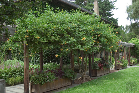 Использование: используется для вертикального озеленения стен, оград, беседок, пергол, трельяжей, хорошо смотрится на фигурных подпорах (шар, пирамида) на газонах. Декоративна крупными перистыми листьями, оригинальными цветами, а также длительным цветением.