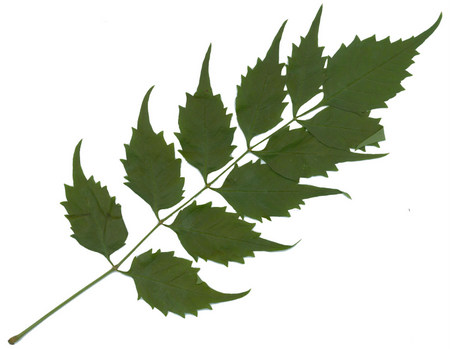 Листья непарноперистые, до 20 см в длину, состоят из 9-11 ярко-зеленых, голых сверху и снизу более светлых опушенных полностью или только по жилкам листочков.