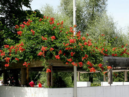 Использование: используется для вертикального озеленения стен, оград, беседок, пергол, трельяжей, хорошо смотрится на фигурных подпорах (шар, пирамида) на газонах. Декоративна крупными перистыми листьями, оригинальными цветами, а также длительным цветением.