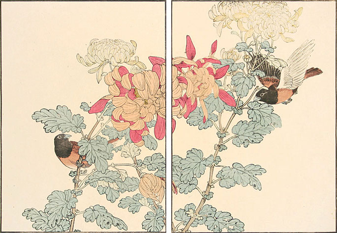 Keinen. Chrysanthemum, Chestnut Mannikin. Color woodblock, 1891