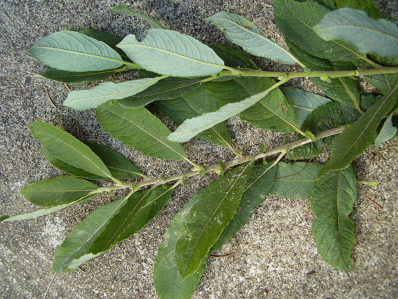 Synonyms: grey willow, ash-grey willow, Salix acuminata Mill., Salix aquatica Sm., Salix deserticola Goerz ex Pavlov.