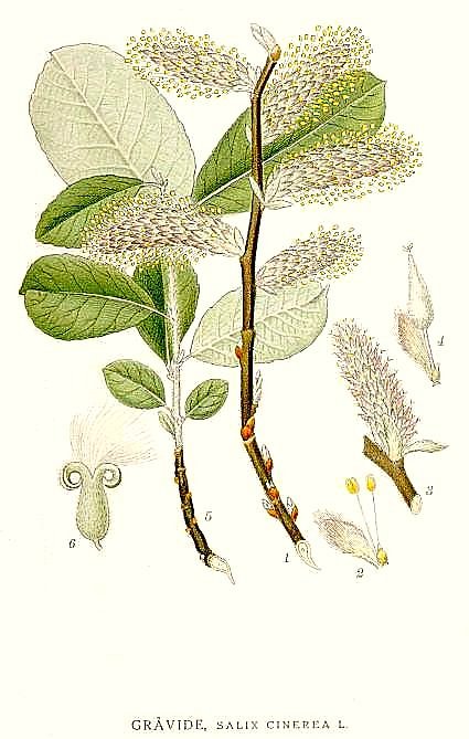 Grey willow (Salix cinerea L.) – a species of deciduous shrubs in the genus Salix (Salix) of the family Salicaceae. In nature it occurs practically throughout Europe, Asia Minor, the Transcaucasus, Western Siberia and Kazakhstan; in Ukraine it grows across the whole territory except the highlands of the Carpathians. Naturalized in New Zealand and Australia. Grows in marshy places, grassy and mossy bogs, in mixed wet forests, near ditches, and on floodplain meadows. Grows as separate shrubs or forms tussocks; in some places it forms extensive thickets.