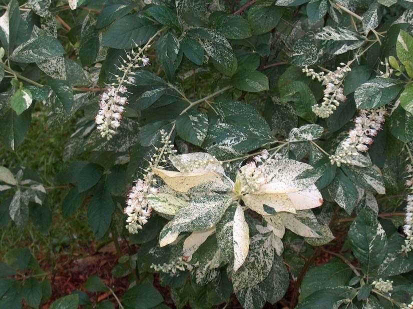 A shrub in the Ericaceae family reaching up to 2 m in height. The species Clethra blooms with very fragrant white "candles" resembling bird cherry clusters, beginning at the end of July, and the latest of the cultivars, "September Beauty" in mid-September. Other cultivars flower in between.