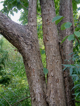 Кора на стволе серо-коричневая, трещиноватая, отслаивается пластинами.