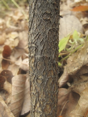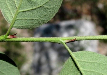 Представляет собой листопадный кустарник 1,5-2 (4) м в высоту. Крона раскидистая, негустая. Ветви шероховатые от пробковых наростов, круглые в сечении. Молодые побеги буроватые, реже красноватые, опушенные, позже оголяющиеся и голые. Почки конусовидно-продолговатой формы, до 6 мм в длину, рыхлые, чешуйки оттопыренные с немного расходящимися вершинками, волосистые. Листовой рубец маленький, хорошо заметен один след, остальные 2 заметные лишь на срезе. Сердцевина белого цвета, маленькая, округлой или слегка угловатой формы.