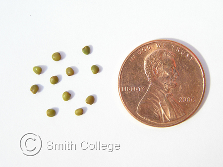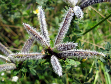 Бобы прямостоячие, волосистые, 20-25 (40) мм в длину, появляются в октябре.