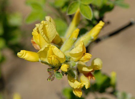 Цветки золотисто-желтые, до 1,5 см в длину, мотыльковые. Появляются в пазухах листьев. Цветет в конце мая и до конца июля.