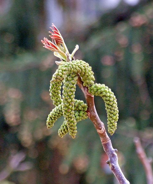Цветки зеленые, мелкие, однодомные. Тычиночные цветки собраны в висячие сережки. Пестичные растут одиночно или группами на верхушках однолетних побегов.