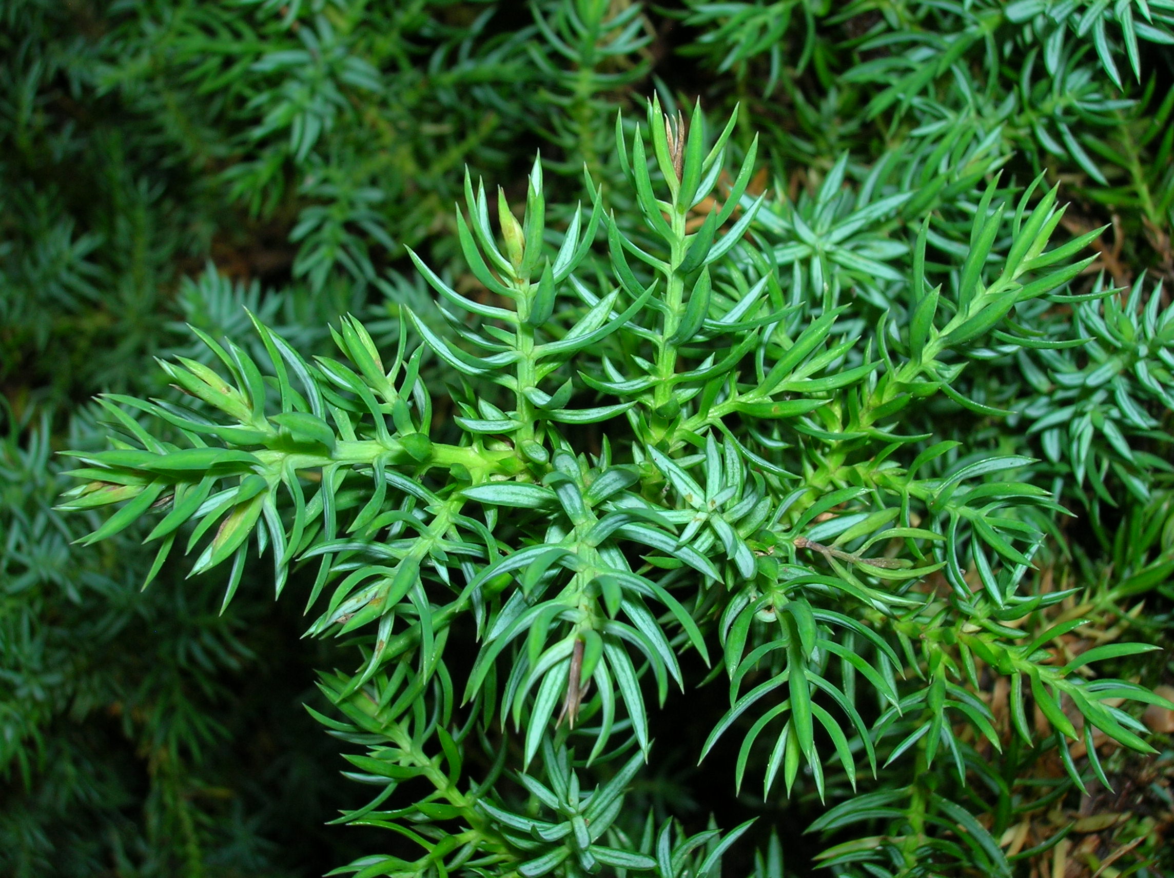 Хвоя иголчатая, в мутовках по 3, голубоватая, продолговато-ланцетной формы, 6-8 мм в длину, вогнутая сверху, снизу выпуклая, у основания расположены 2 белых пятна.