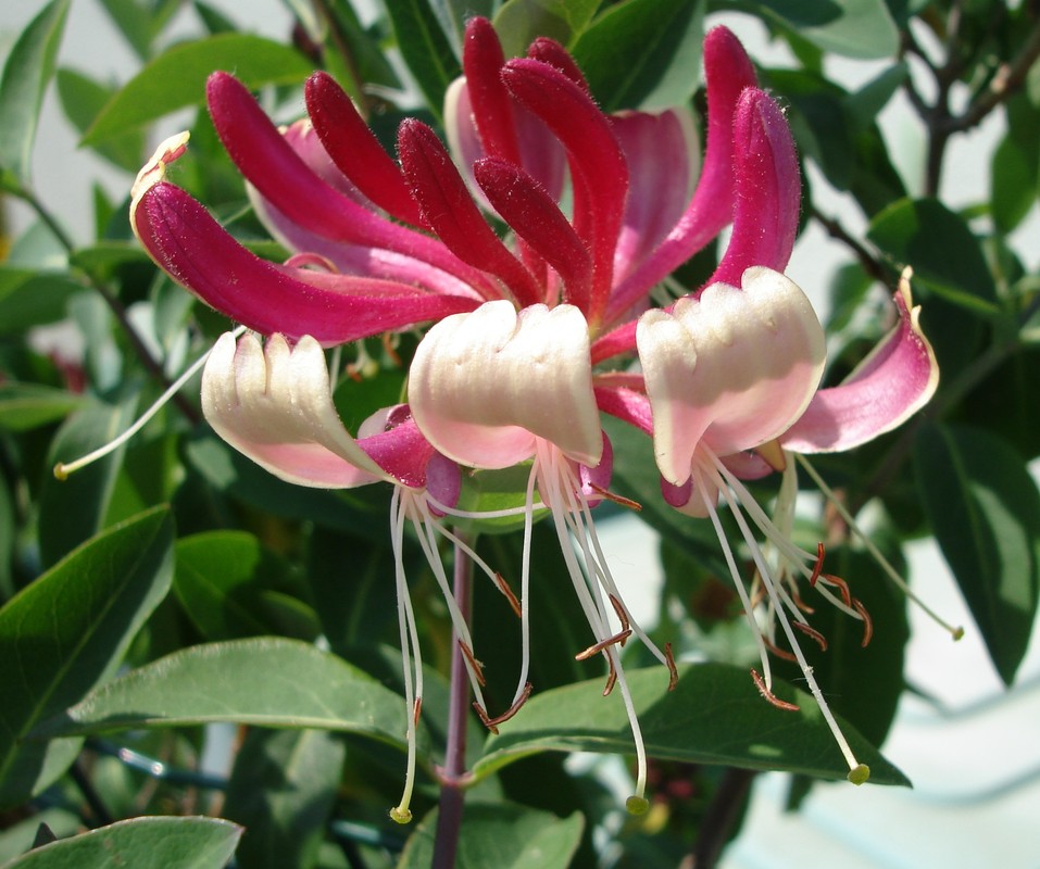 Japanese creeping honeysuckle (Lonicera japonica var. repens) – a variety of Japanese honeysuckle. Naturally occurs in Japan, where it forms thickets on hills and mountains, and also in the mountains and lowlands of Korea. It received the award of the English Royal Horticultural Society AGM (Award of Garden Merit).
