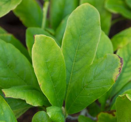 Листья обратнояйцевидной или эллиптической формы, 6-10 (15) см в длину и 3-5 см в ширину, темно-зеленого цвета. Осенью листья приобретают желтовато-бронзовый цвет.