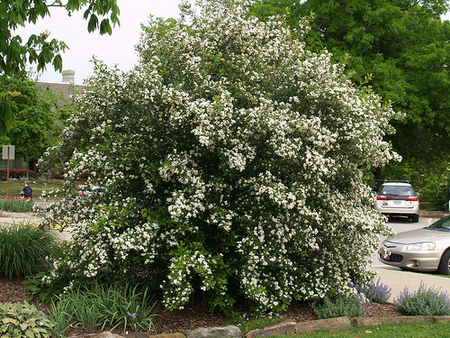 Blooms in late spring or early summer. Flowers five-petaled, white or pinkish, numerous. Flowering is short-lived. Pollinated by bees.
