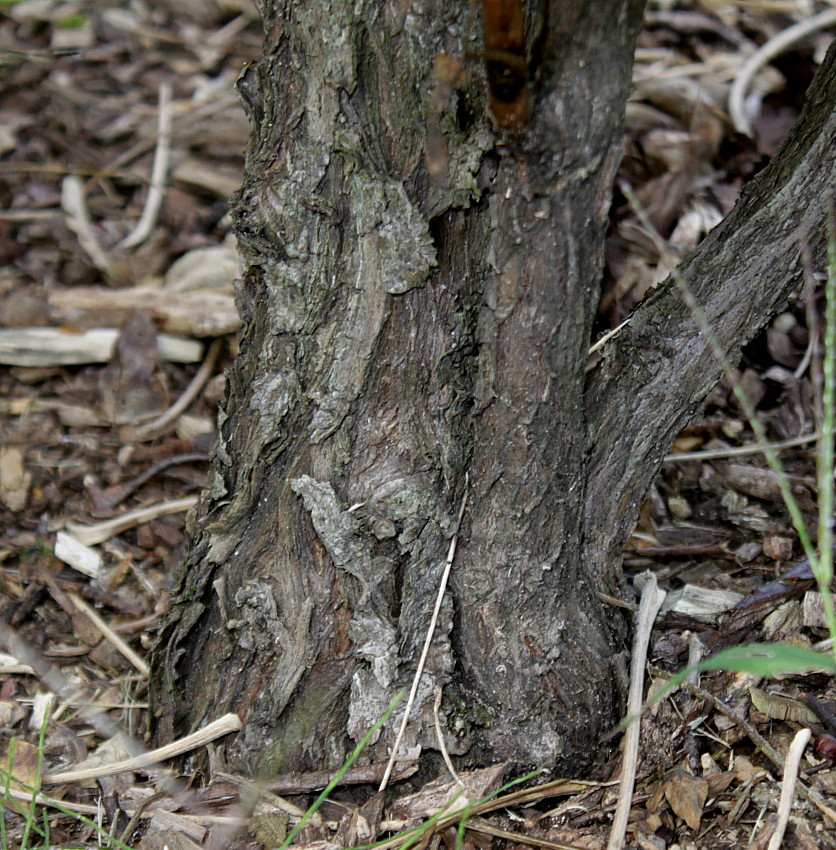 Представляет собой листопадные кустарники до 1,5 м в высоту и 2-3 м в диаметре. Стебли толстые, прямостоячие, маловетвистые, темно-бурого цвета. Молодые побеги зеленые, позже становятся светло-коричневыми.