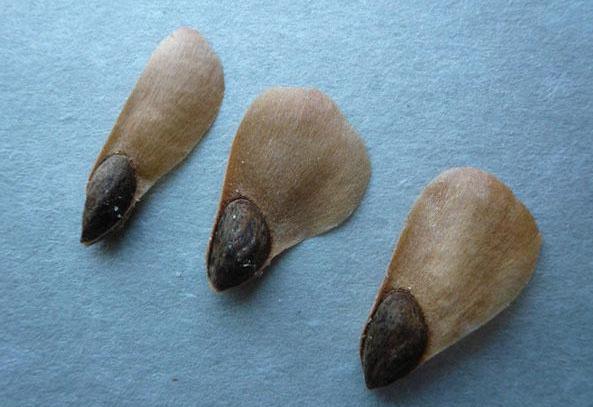 Семена зреют в октябре и разносятся ветром. Всхожесть семян не теряется в течение 8-10 лет. В зависимости от условий произрастаний дерево начинает плодоносить с 10-60 лет.