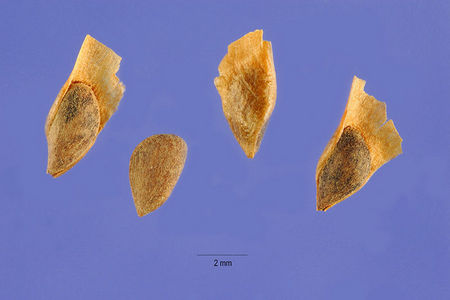 Семена темно-коричневые, 2 мм в длину. Семенное крыло оранжево-коричневое, по длине в 2-3 раза превосходящее семя. Плодоносит ежегодно и обильно.