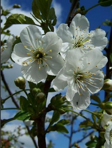 Сорт самофертильный, не нуждается в опылителях. Цветки белые, ароматные, собраны в зонтиковидные соцветия по 2-3 штуки. Чашелистиков и лепестков 5, тычинок 15-20, пестик 1. Цветет в апреле-мае.