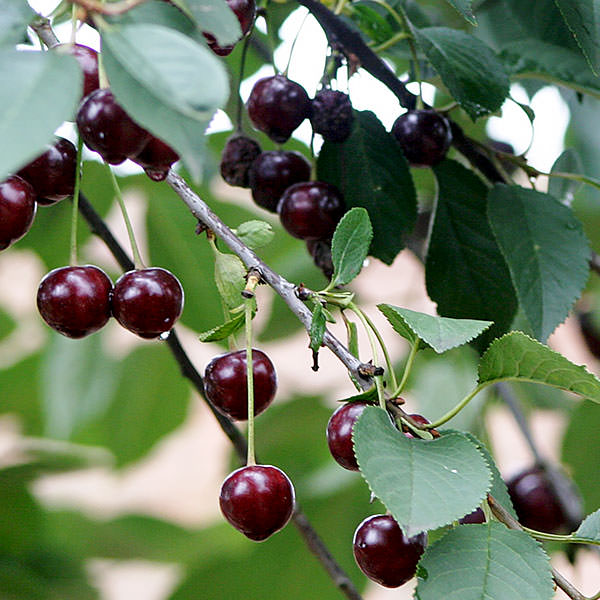 Плоды – крупные кисло-сладкие шаровидные костянки темно-красного цвета, до 9 см в диаметре, гладкие, блестящие. Созревают плоды в августе-сентябре. Урожайность до 35 кг с одного дерева.