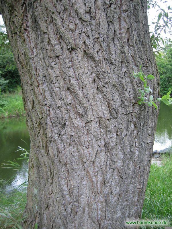 Представляет собой крупное дерево 25-30 м в высоту с широкоокруглой, часто плакучей кроной. Растет быстро, в первые 10-20 лет прирост составляет 50-100 см, после 15 лет – 20-30 см, после 20 лет рост замедляется. Ствол до 1 м в диаметре, покрыт темно-серой или почти черной, с продольными трещинами корой. Молодые побеги красно-бурые или оливково-зеленые, с серебристо-пушистыми концами, ломкие в сочлениях, опушены. Старые побеги голые, неломкие, гибкие, блестящие, желтовато-бурые. Нижние ветви часто опускаются до земли.