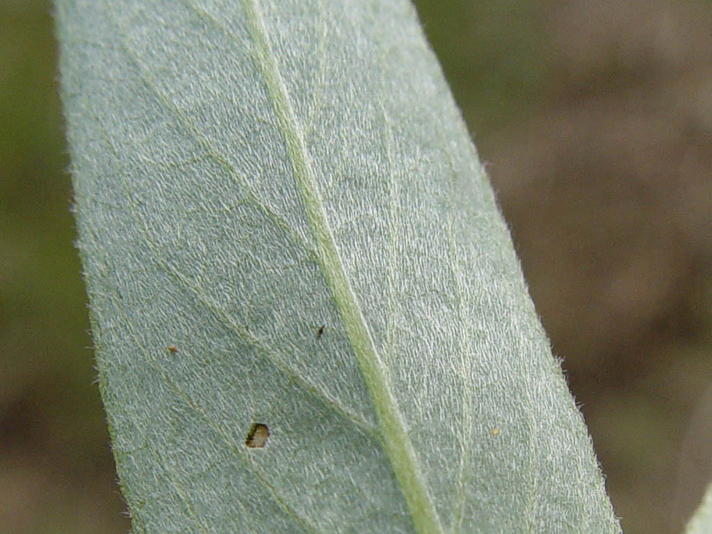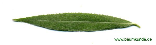 Листья очередные, линейно-ланцетные или ланцетные, 5-12 (15) см в длину и 1-3 см в ширину, заостренные, с мелкопильчатым краем, с прижатым шелковистым серебристым опушением с обеих сторон при распускании, позже светло-зеленые сверху и снизу серебристые, со средней и боковыми жилками (от 12 до 15 пар).