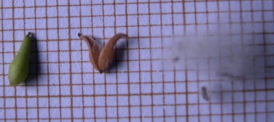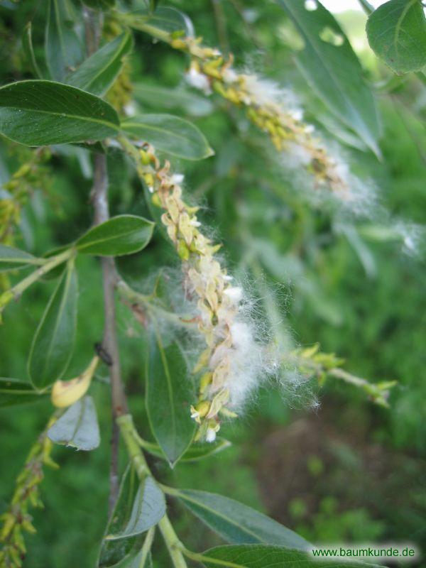 Плоды – небольшие продолговатые грушевидные коробочки 4-6 мм в длину, открывающиеся на 2 створки, растут на коротких ножках до 1 мм. Семена мелкие, с белоснежными волосками, созревают в мае-июне. Плодоносит ежегодно.