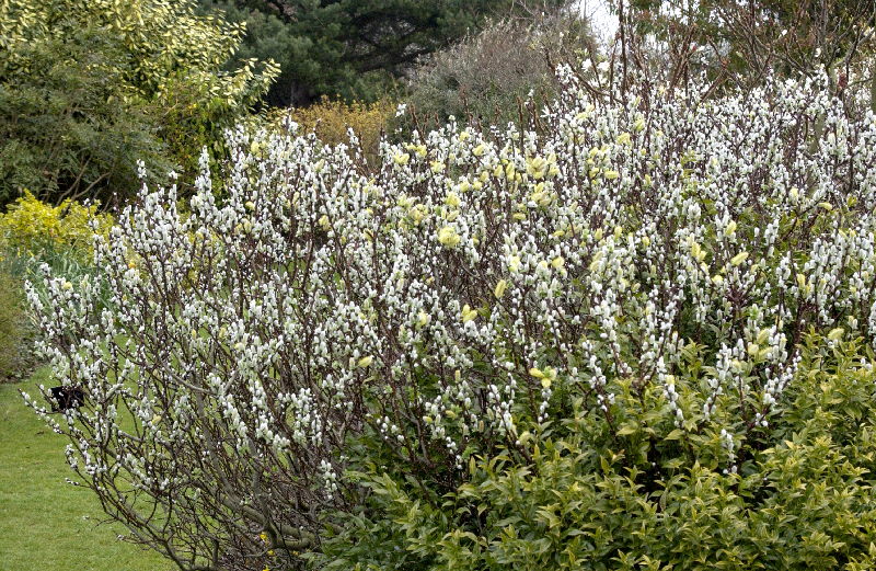Цветет в апреле-мае. В лесном поясе цветет до распускания листьев, в верхних поясах одновременно с ним. Сережки плотные, цилиндрические, 3-5 см в длину, прямостоячие, серебристого цвета, при цветении светло-золотисто-желтого. Прицветные чешуйки продолговатой или продолговато-лопатчатой формы, острые или тупые, покрыты белыми волосками, светло-бурые. Тычинки свободные, в числе 2, в редких случаях частично спаянные, до 7 мм в длину, голые, с желтыми пыльниками. Завязь до 4 мм в длину, коническая, голая, притупленная, зеленого или буро-зеленого цвета, рыльце короткое, двухлопастное, 0,2-0,3 мм в длину.