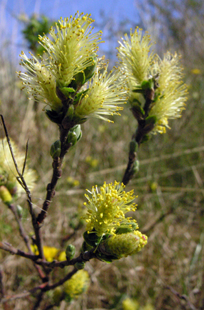 Flowers in late April – early May, before the leaves unfold. Male catkins small, silvery, later yellow, fragrant.