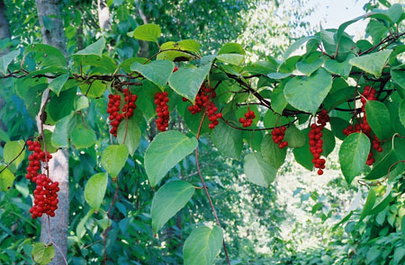 Плод — состоит из многих шарообразных, красных, двусемянных ягод. Ягоды сочные, кислые, с запахом лимона, съедобные. Семена почковидные, сохраняют всхожесть только до весны.