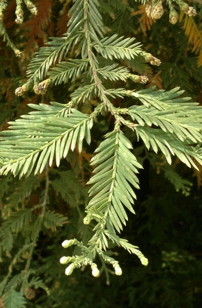 Виды: род включает только один вид секвойя вечнозеленая Sequoia sempervirens (D.Don) Endl.