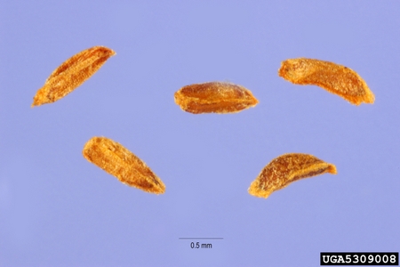Плоды представляют собой многосемянные листовки, которые раскрываются по сначала по внутреннему, а позже и по внешнему швам. Семена плоские, ланцетовидной формы, коричневого цвета, 1,5-2 мм в длину и 0,5 мм в ширину, крылатые. Созревают и высыпаются через 1,5-2 месяца после цветения.