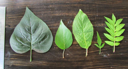 Photo of leaves of S. vulgaris, S. amurensis, S. komarovii, S. persica, S. pinnatifolia. Author S.Bulycheva