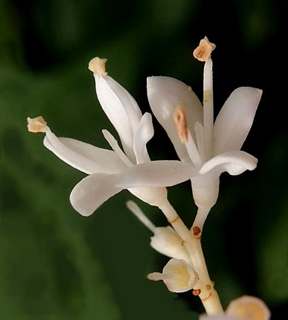 Flowers waxy, small, bisexual, often fragrant, bisexual, of various colors – white, lilac, cream, pink, purple or violet. Gathered in axillary or terminal paniculate or pyramidal inflorescences, which develop from buds laid on last year’s shoots, sometimes on the growth of the current year. The calyx is small, bell-shaped, 4-toothed, not falling off. The corolla is tubular or narrowly funnel-shaped. The corolla tube is cylindrical, much longer than the calyx, more rarely widening upwards, short and almost equal to the calyx in length. The limb is 0.6-1.2 cm in diameter. There are 4 lobes, they are more or less spreading. There are 2 stamens. Flowers depending on the species in April-June.