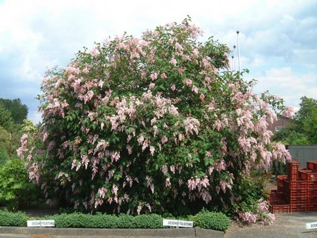 Flowers in large pendulous fragrant panicles up to 30 cm long; buds dark carmine, inflorescences dark pink. Blooms abundantly in June-July.