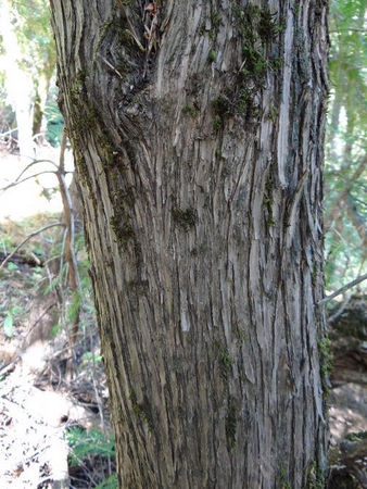 Представляет собой двудомное дерево 20-25 м в высоту с диаметром ствола 90-120 см. Крона в основном коническая, реже пирамидальная, в более зрелом возрасте с округлой вершинкой. Растет медленно. Кора тонкая, 0,8-1,3 см в толщину, серо-коричневая, отслаивающаяся. Ветви толстые, приподнимающиеся, с пониклыми концами. 2-летние побеги красновато-коричневые, голые. Почки не смолистые.