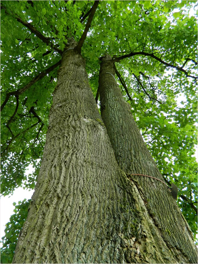 It is a deciduous, fast-growing large tree 25-36 (50) m tall. Crown high, pyramidal in youth, later becoming oval. Trunk massive, straight, 60-150 cm in diameter. Bark at first smooth, light gray-green, becoming uneven with age, with white diamond-shaped fissures. Branches brown, shiny or appearing waxy, with a slightly sweet pleasant aroma.