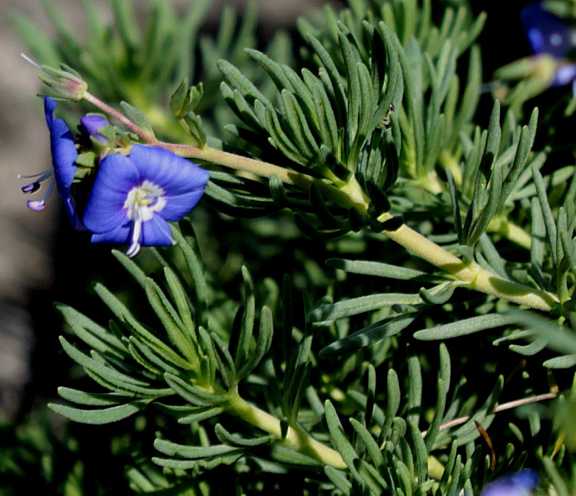 Листья 8-12 мм в длину, сидячие, короткие у основания, перисторассечённые на тонкие, линейные, скручивающиеся доли.
