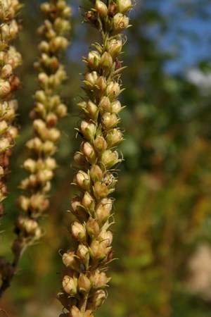 Цветки собраны в конечные густые кисти, длиной до 25 см, одиночные, реже с несколькими короткими боковыми кистями. На одном растении образуется до 450 цветков. Цветоножки почти равны чашечкам или короче. Чашечка 2-3 мм в длину, разделена на 4 ланцетные или треугольно-продолговатые почти равные острые доли, две из которых несколько длиннее других. Венчик синего или сине-фиолетового цвета, 6 мм в длину; трубка белая, волосистая внутри; доли отгиба тупые или туповатые, широкие, почти равные по длине; одна лопасть округлой, остальные продолговатой формы. Тычинок 2, они длиннее венчика. Нектарники расположены у основания завязи. Цветет с середины или конца июля до 50 дней.