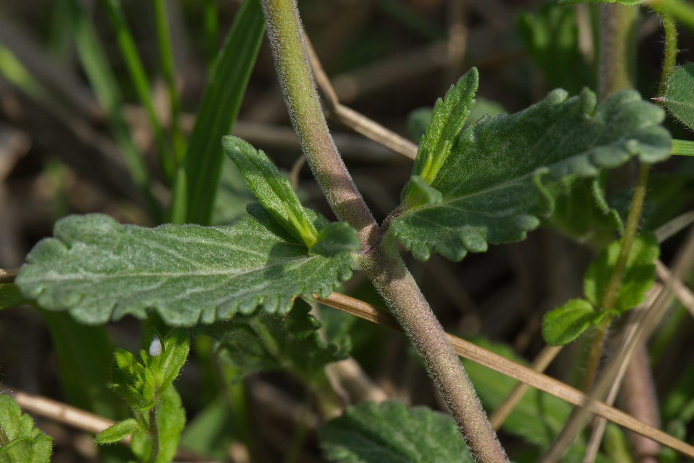 Цветки собраны в боковые густые, многоцветковые кисти, супротивно расположенные, растут в пазухах 2-4 верхних листьев, 1,5-4 см в длину. Цветоножки короче прицветников и чашечки» прицветники линейно-ланцетные. Чашечка пятираздельная, доли неравные, линейно-ланцетные, превышают коробочку; 2 передние доли в два раза длиннее задних, 5 доля в три раза короче передних. Венчик 5-8 мм в диаметре, синевато-лилового или бледно-голубого цвета, доли отгиба 4-5 мм в длину, 1 лопасть округло-яйцевидной формы, 2 островатые, одинаковые, широко-яйцевидные и одна тупая, яйцевидной формы.