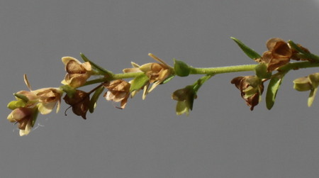 Соцветия – боковые и верхушечные кисти, расположенные в пазухах, рыхлые, многоцветковые, 2-20 см в длину, удлиненные при плодах, в пазухах мелких прицветников цветки расставленные; цветоножки покрыты опушением, при плодах прямые или направленны вверх под острым углом, равны прицветникам или в два раза больше их. Чашечка разделена на продолговато-яйцевидные, продолговатые и равные тупые доли, короче, равна или длиннее цветоножек. Венчики 3-4 мм в длину, белого, голубого ил беловатого цвета, с розовыми жилками, почти колесовидной формы, немного длиннее чашечки; трубка короткая, с четырьмя жилками. Тычинки изогнутые, почти равны венчику. Столбик от 1 /2 до 2/3 длины коробочки. Цветет с июня по август.